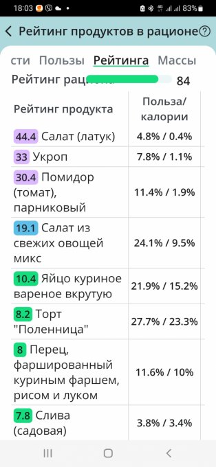 | Калории | 136.1 кКал | 8.08% | |