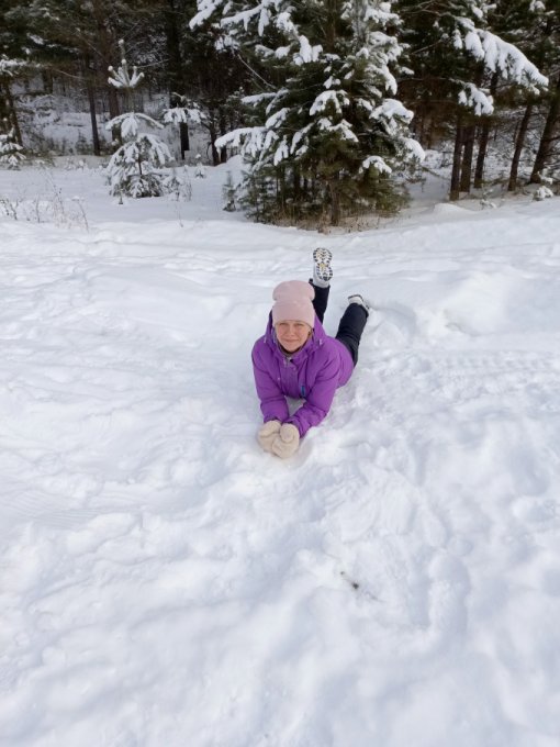 Полина, спасибо! Тейп сделал свое дело, на ногу наступаю нормально. Спина побаливает😥 при движении. Надо мужа просить тоже тейп наклеить. Повеселились на славу🤣 А вам что мешает устроить такую вылазку? Горок нет и снега?
