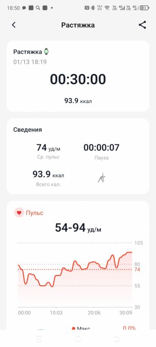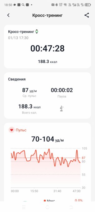 Сегодня была тренировка кроссфит. Потом немного растяжки. Данные со смарт часов.