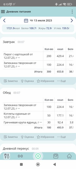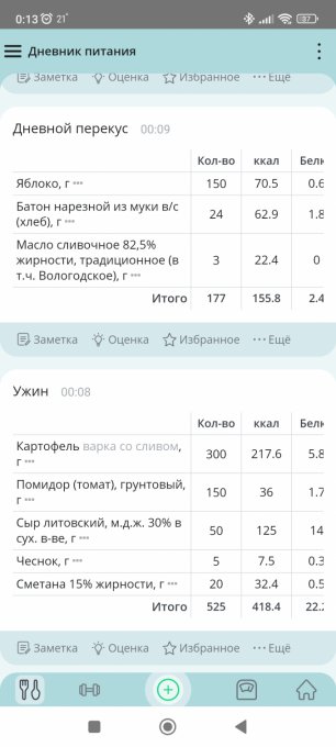 | Итого за день | 765 | 1832 | 70 | 76 | 206 |