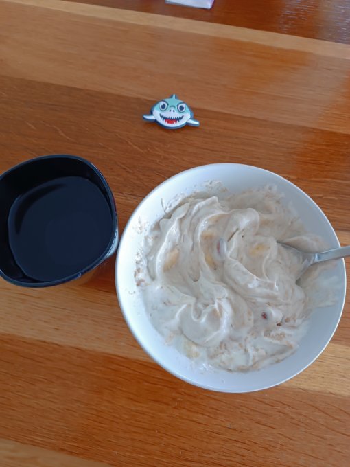 Перекус: время нужно переносить до того, как иду за детьми, иначе всю дорогу думаю о еде. Смешала греческий йогурт, протеин, нарезанный банан и мендаль. Вот тут я увидела свою ошибку, т.к.опять молочное и опять протеин.