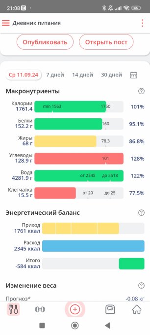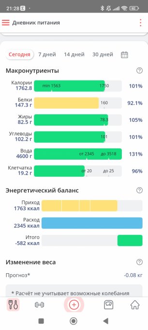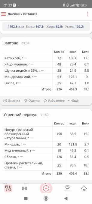 Решила всё-таки сегодня выложить отчёт. И сегодня же изменю нормы бжу, готова к этому. Плюс подключаю тренировки. Мой организм адаптировался, чувствует себя неплохо