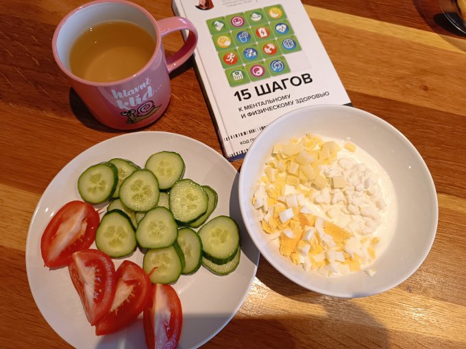 2) ну и составила план питания на 7 дней, кому интересно, могу поделиться на него ссылкой. Если в комментариях будет интересЕсли будет интересно, но раз в месяц 20го числа буду выкладывать дневник с результатами, ощущениями и т.д.Завтрак: смешала cottage cheese, яйцо, сыр эдем. Нарезала огурцы, помидоры