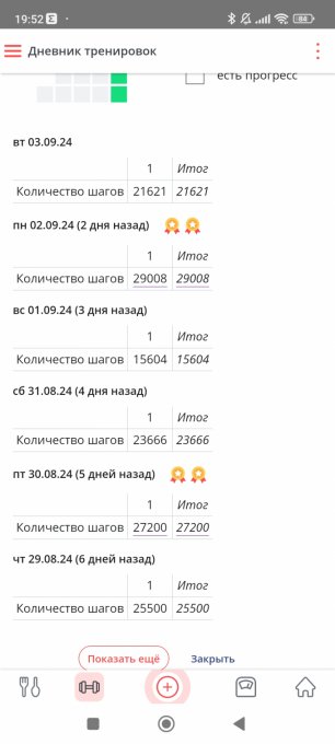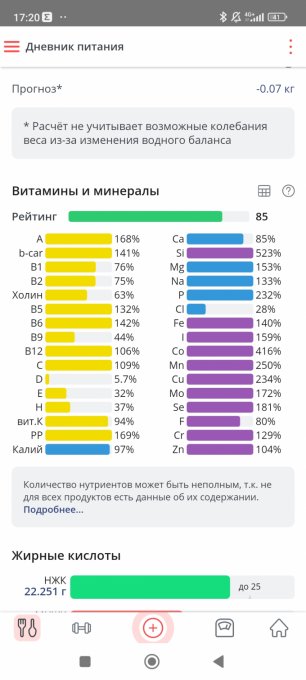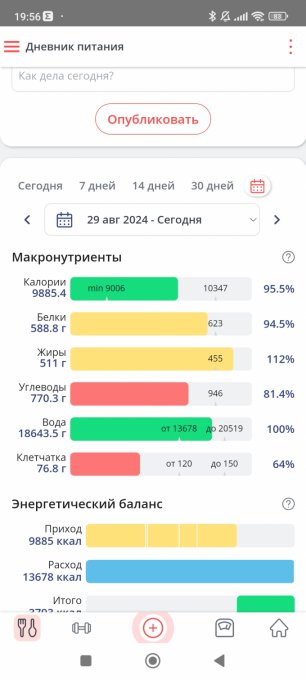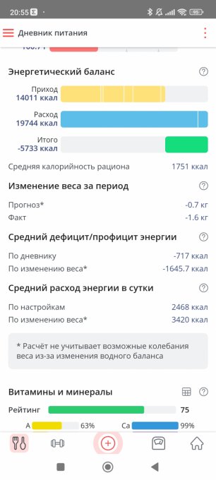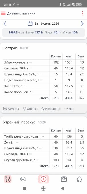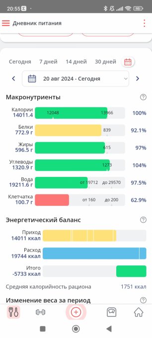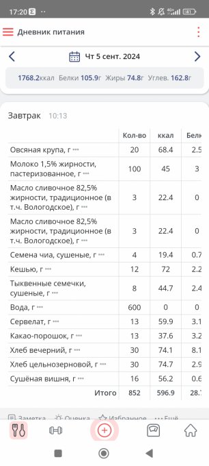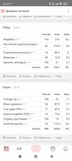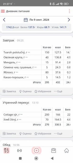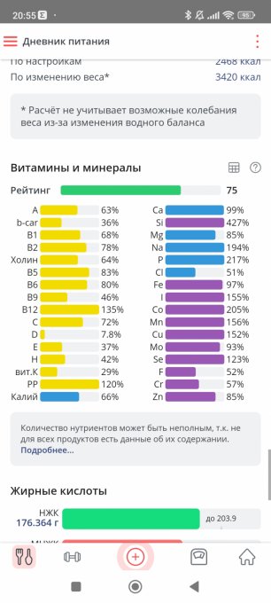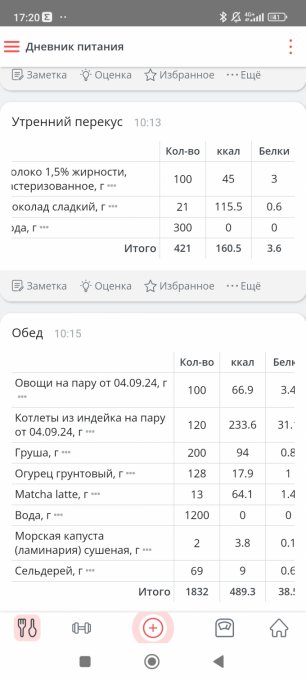 | Итого за день | 3180 | 1760 | 95 | 87 | 141 |