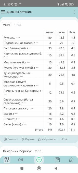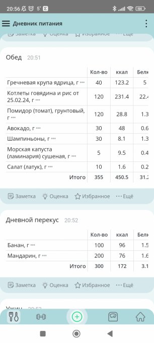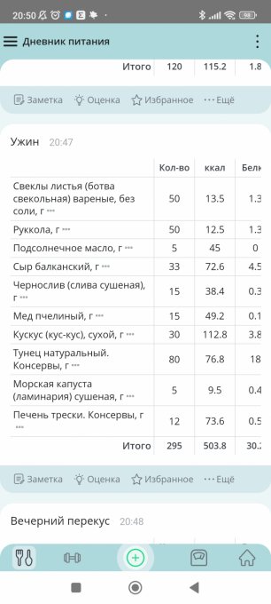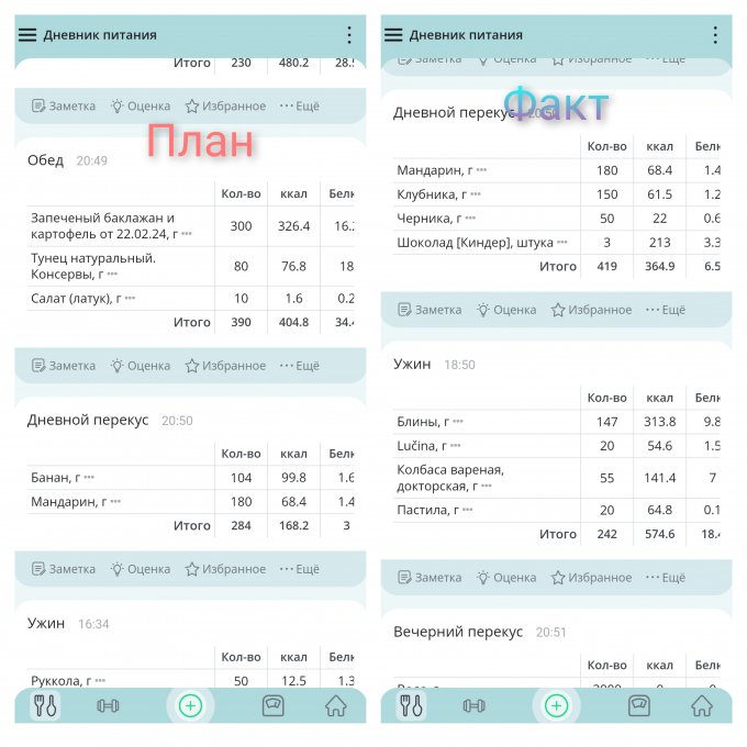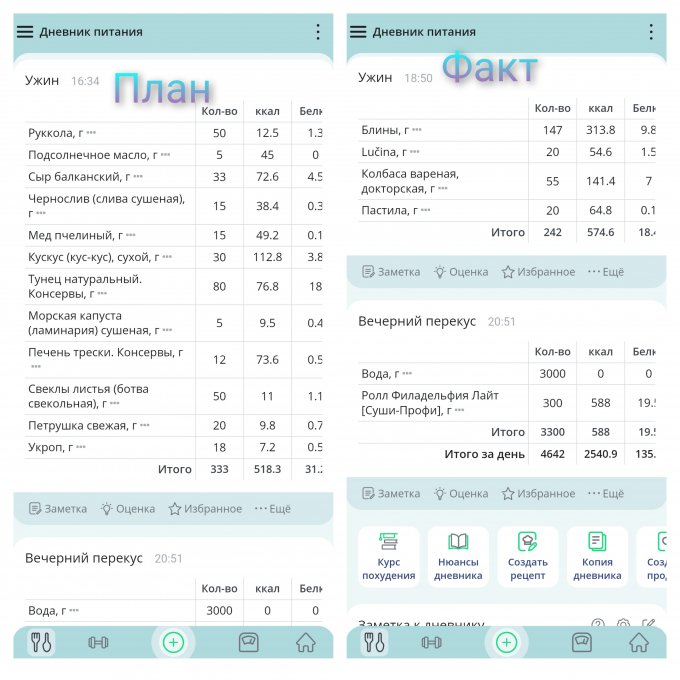 Примеры моих некоторых приемов пищи