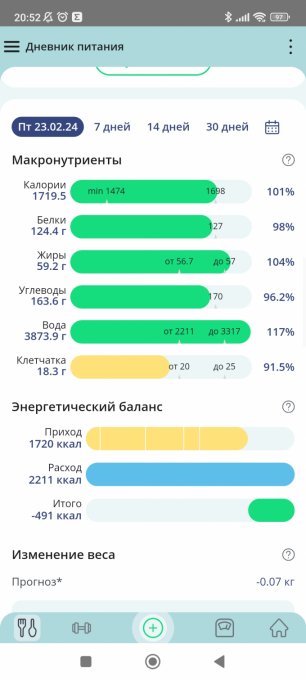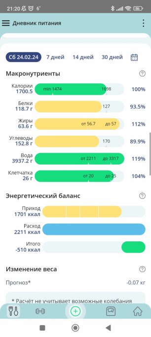 Чтобы увидеть отчеты по питанию и график веса, необходимо войти.