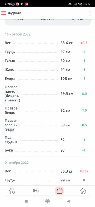 Сегодня чуть не случился срыв, но не случился, это главное😅вес стоит четвертую неделю, сегодня вообще плюс 300 гр😤хотела психануть на все, но решила замериться лентой, так как чувствую прогресс по одежде, честно была поражена 🙃 ниже мои замеры, разница в 7 дней👇вообще не понимаю,что происходит и почему вес не идёт вниз, мне кажется меня тролят🤯. Ну главное с головой поработала, посидела, подумала, удержалась.