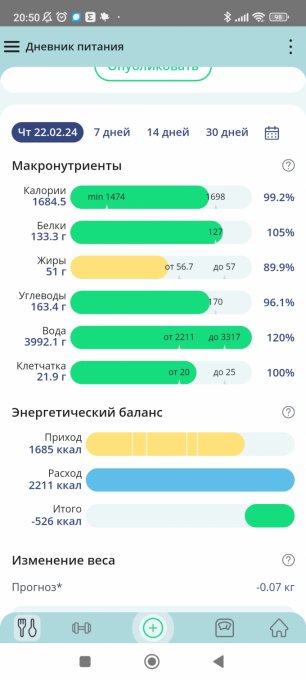 Чтобы увидеть отчеты по питанию и график веса, необходимо войти.