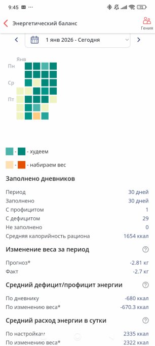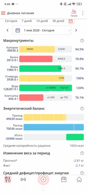 Калорийность: небольшой дефицит или поддержание, выясню по первому