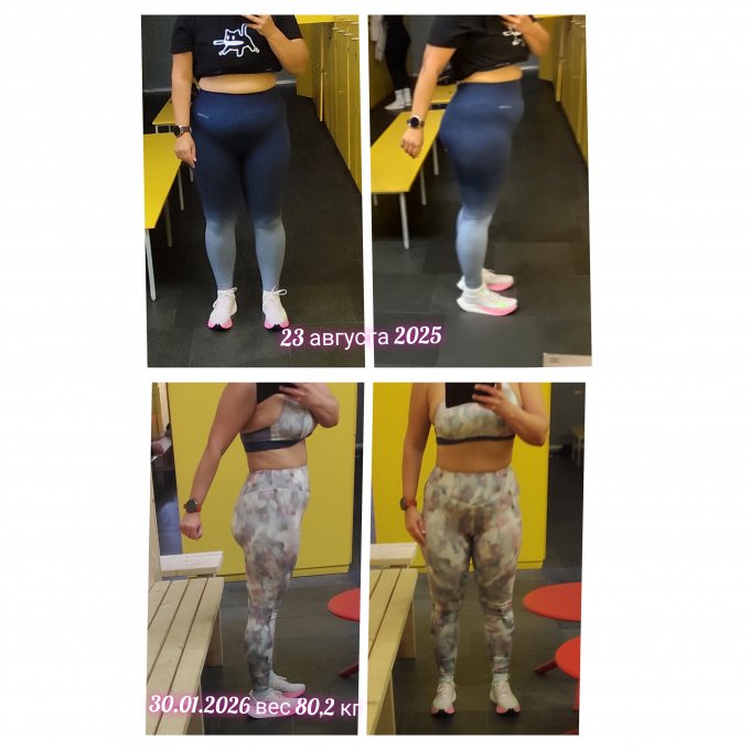Тренировки в зале: 4 дня (2 с тренером, 2 сама) + в дни тренировок