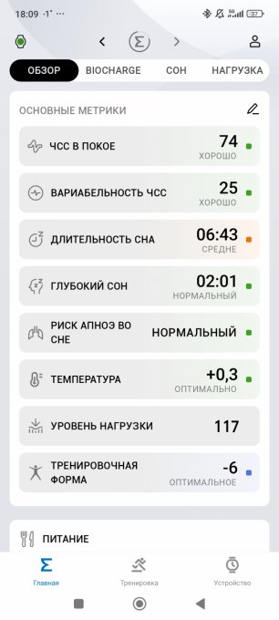 ❌Оценка сна: 67 (REM - 12%, глубокий сон - 31%)