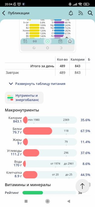 - В ленте не видно углеводов в рационах пользователей!