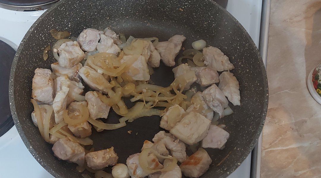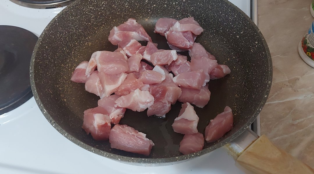 | Свинина, шейная часть (мякоть) (Жарка мелким куском) | 450 г |