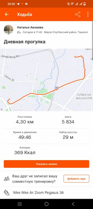 Было две тренировки: одна дома на низ, вторая была быстрая прогулка.