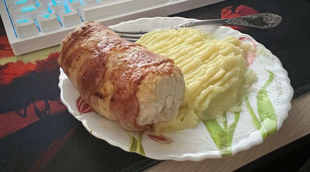Вкусные, жирные куриные рулетики из трёх ингредиентов. Начинку можно менять на что угодно. Бекон лучше оставить, он затыкает швы, скрепляет, придёт форму и красивый внешний вид. Без него может развалиться.