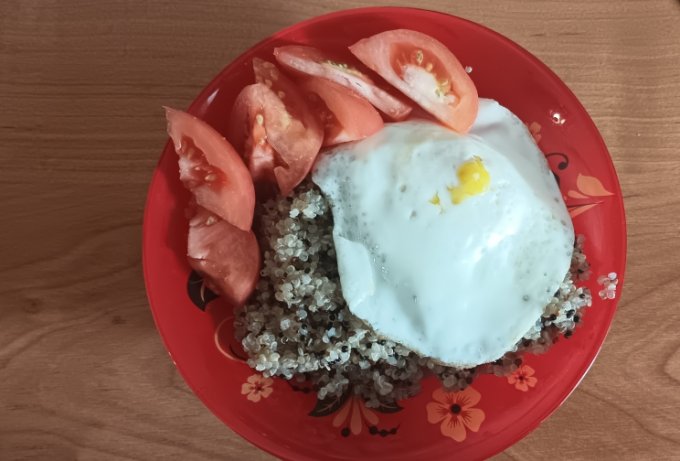 Киноа с яйцом, помидор