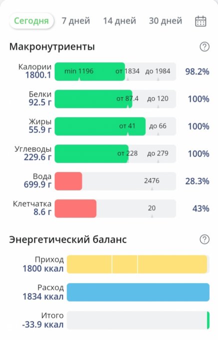 Чтобы увидеть отчеты по питанию и график веса, необходимо войти.