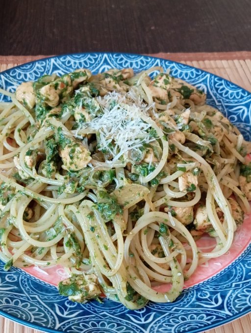 На обед паста с курицей и шпинатом. Папай плохого не посоветует) рабочий способ)))