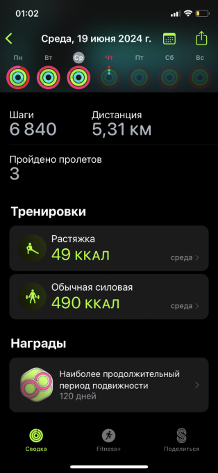 Дневник питания и тренировок за 19.06.2024