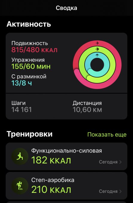 ▪️По активности: степ, сотка, упражнения для запястий, балансы, по дороге домой - пальчиковая гимнастика. Встречные люди, наверно, думали, что у меня болезнь какая-то.