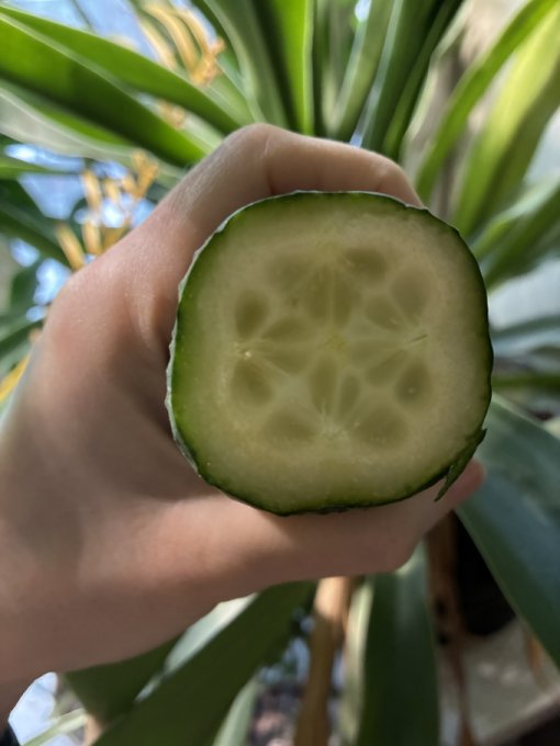 Вау🥹 Это отдельный вид продукта (в магазине) или обычный огурец, но такой уродился? 🥹 Если второй вариант, то есть желание проверять срез при каждой нарезке огурцов 😻