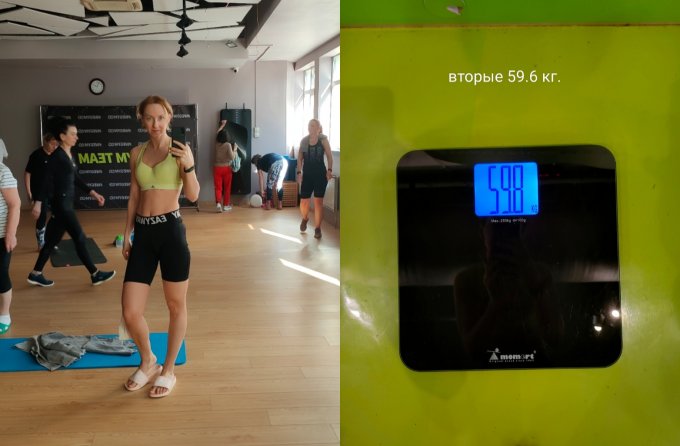 Последний раз вес был 60.3, сейчас 59.6 кг., но талия явно заплыла и ощущение потяжелее. Вообще-то я планировала радоваться когда перешагну в новую цифру, но надеюсь своей болезнью я не поменяла мои крохи мышц на жирок 🤞