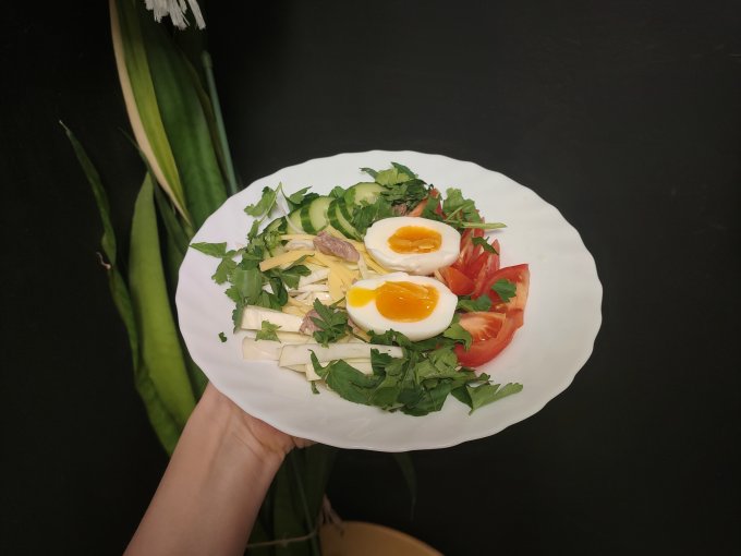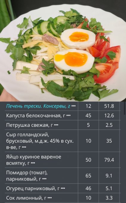 | Салат: помидор, огурец, петрушка |