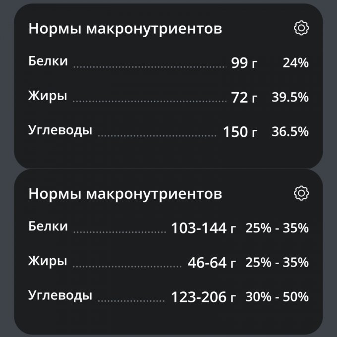 По питанию гладенько 🟢 рейтинг 95, очень нравится составлять заранее рацион, не надо ничего придумывать находу.