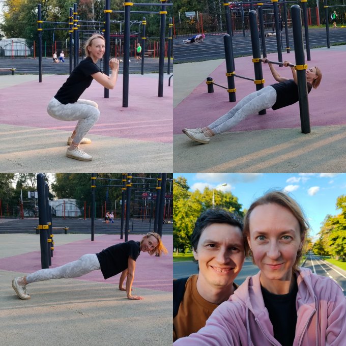 Памп, танцы и немного загара под тучами 🏋️‍♀️👯‍♀️⛅ + повисела на турнике с переменной рук, растянула плечи и поработала на мобильность ног.