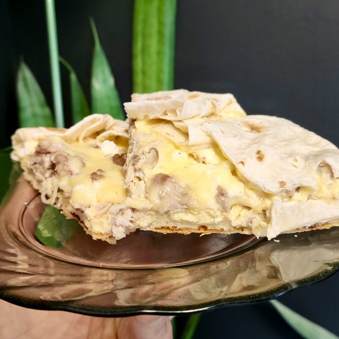 Придумала сделать прорезь в лепешке по кругу и примять краешек круга внутри, чтоб сыр не стек, сработало отлично 🥳